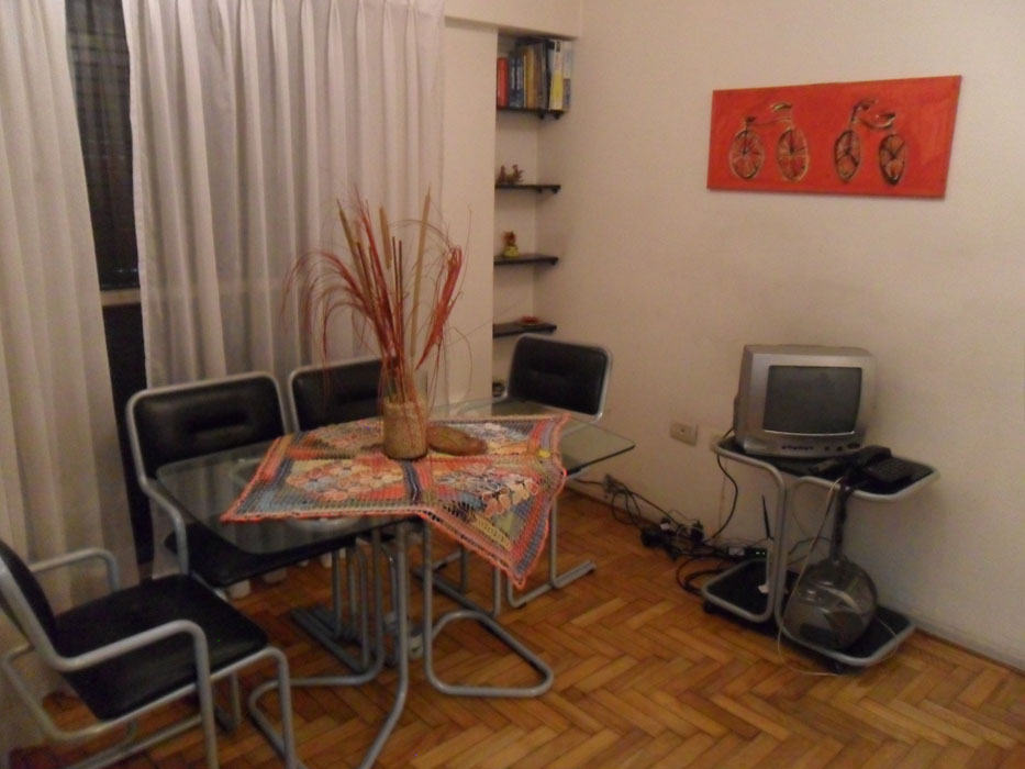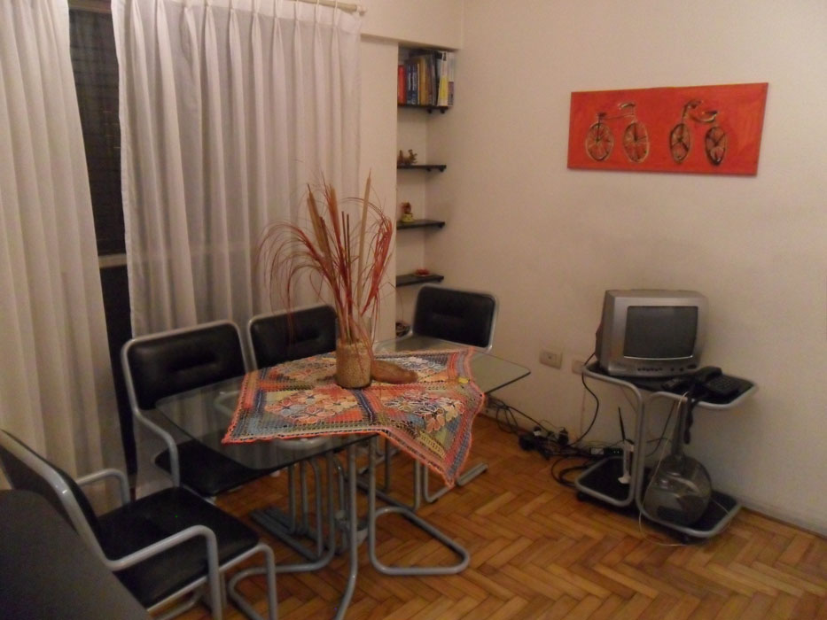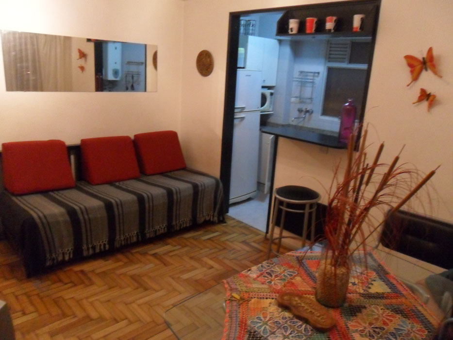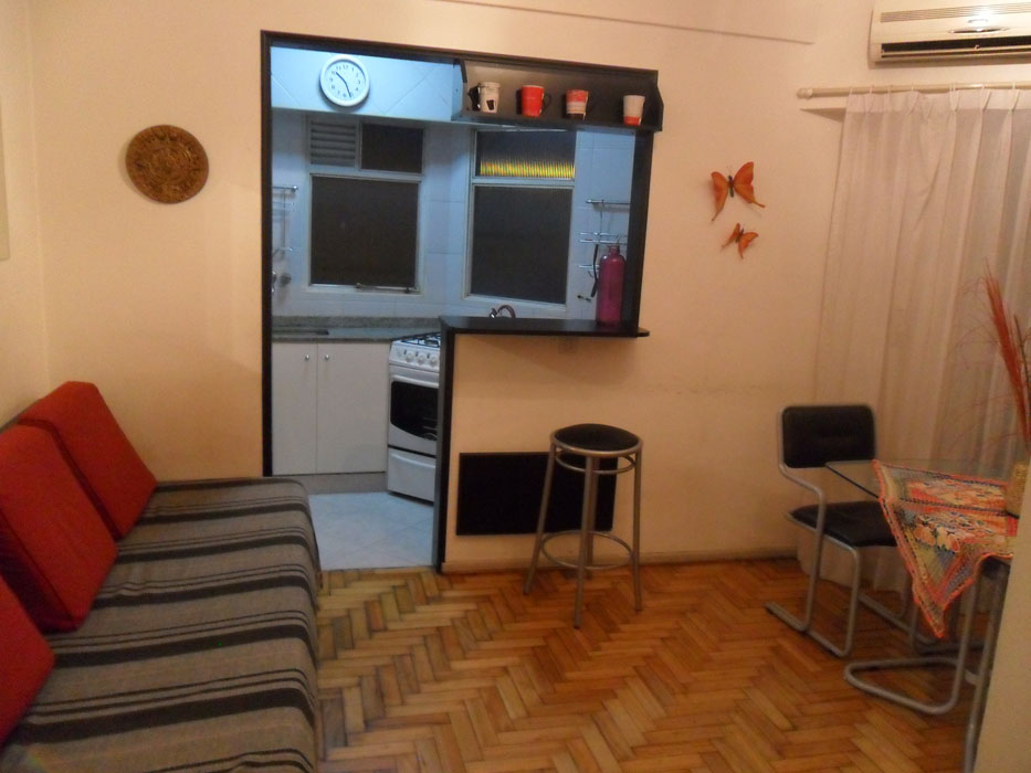 Description: Very nice 1 bedroom apt, Palermo Soho just one block away from Av. Santa Fe. Bedroom has a 1 1/2 bed. Cable TV. Living room has a comfortable sofa bed couch for an extra guest. Internet access. Ideal for student or couple. Fully equipped independent kitchen and full bathroom. Great location..