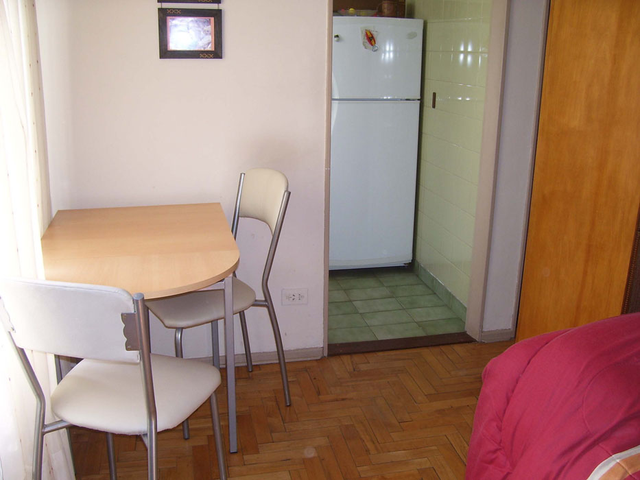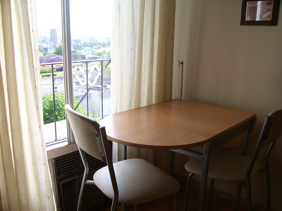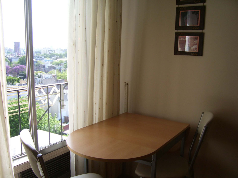 Description: Excellent studio apartment in the heart of Palermo Soho. Spacious with Palermo Viejo Plaza view. Double sommier, cable TV, Internet, DVD and dining table for 3. Fully equipped independent kitchen and complete bathroom. Great location. Dreaming sunset!!!