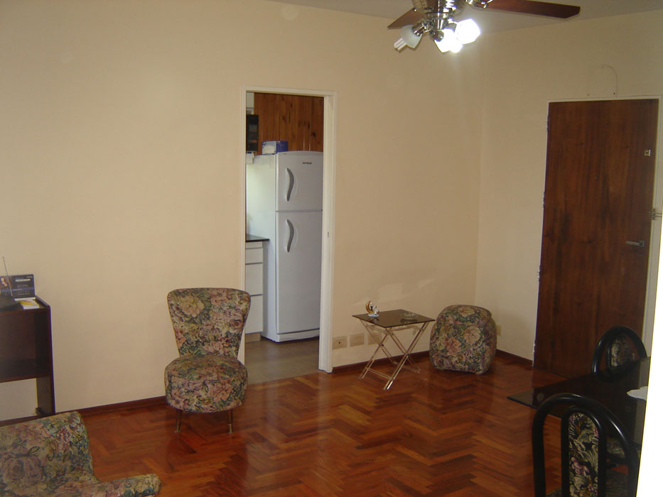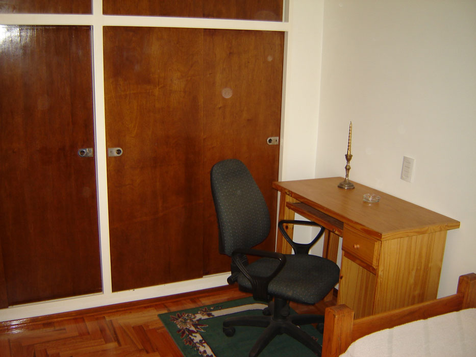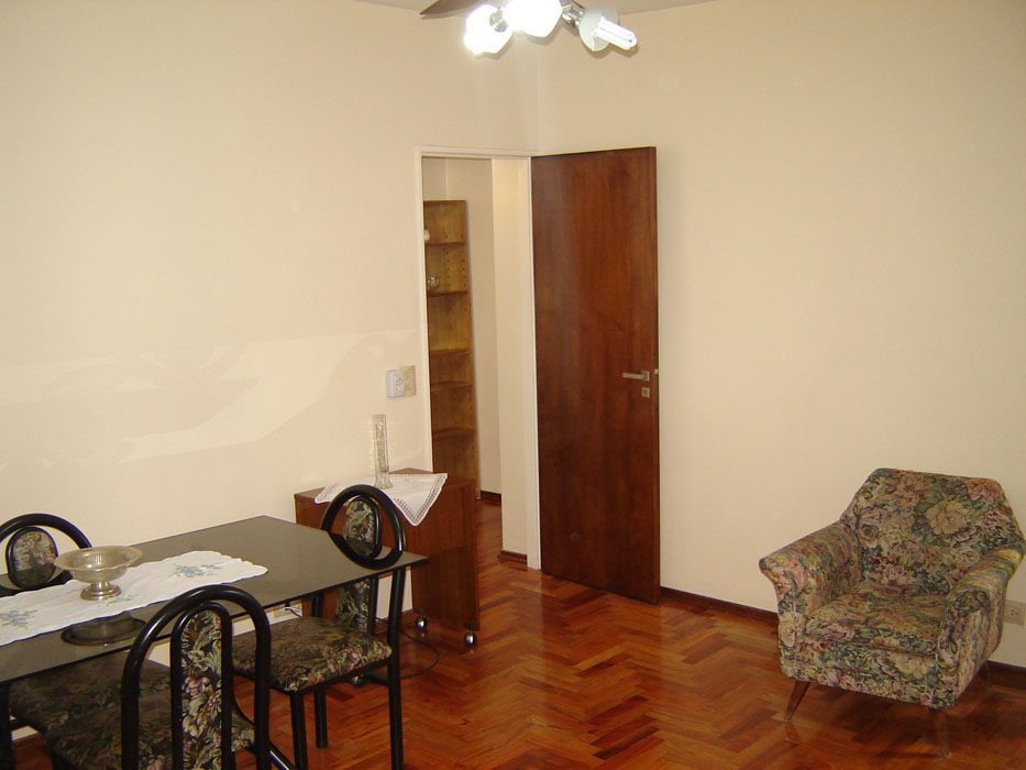 Descripción: Excelente 3 ambientes recién pintado, en Palermo zona Universidades a muy pocas cuadras de las Universidades de Palermo y de Buenos Aires. Un dormitorio cuenta con dos camas simples, y el otro dormitorio con cama simple y escritorio, ideal para estudiantes. El living comedor es muy amplio tiene una mesa para 6 comensales un LCD `32 con cable. Posee conexión a Internet, ideal para estudiantes. Además cuenta con una cocina independiente bien equipada y muebles modernos y nuevos, el baño es completo y amplio. En inmejorable ubicación. Muebles nuevos con estilo.